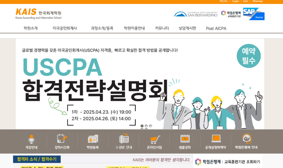 이와 관련된 상담이 필요하다면 KAIS카이스한국회계학원 홈페이지를 참조하셔서 상담 신청하는 것을 추천합니다.